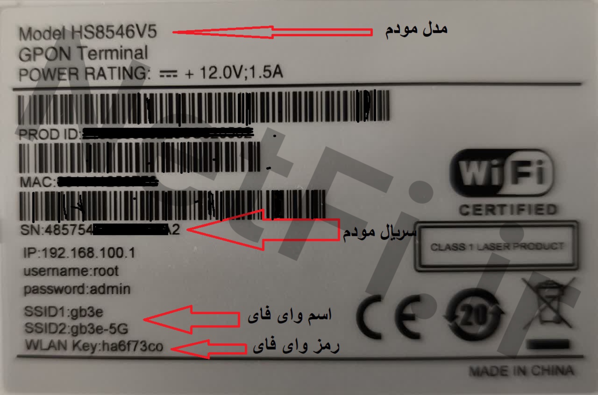 رمز وای فای مودم مطابق شکل زیر داخل برچسبی که زیر مودم قرار دارد نوشته شده است