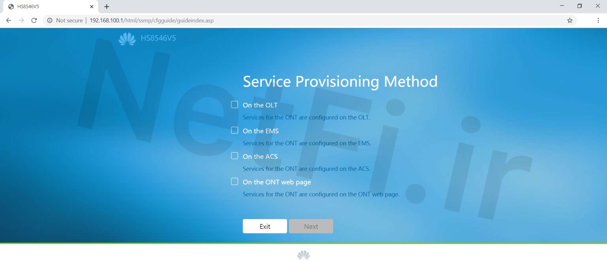 پس از ورود به قسمت تنظیمات صفحه زیر ظاهر میشود ، گزینه Exit را بزنید