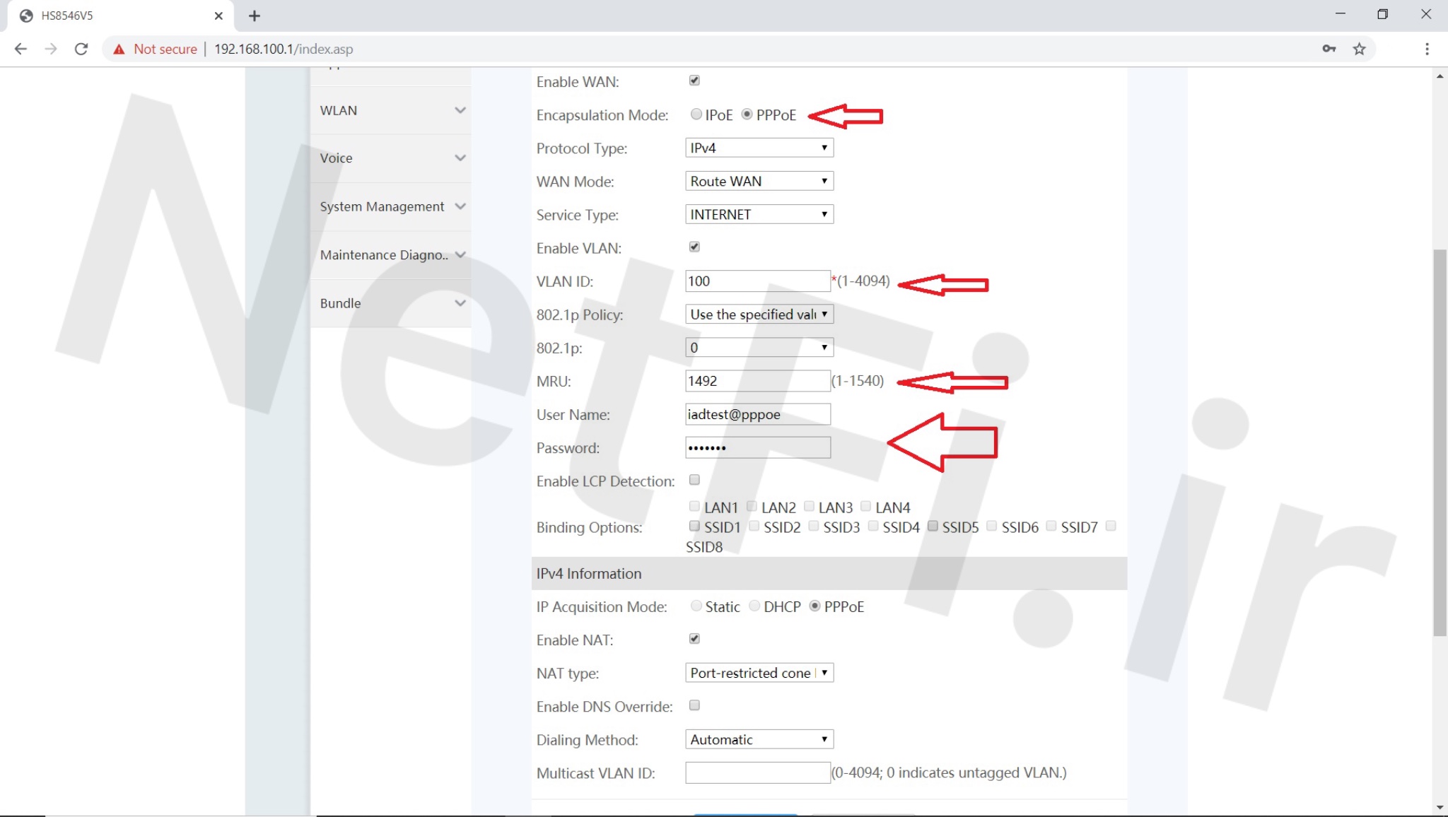 ابتدا Encapsulation Mode را روی حالت PPPoE قرار دهید(حالت IPoE برای تنظیمات ویپ است که در آموزش های بعد به طور کامل توضیح داده خواهد شد)