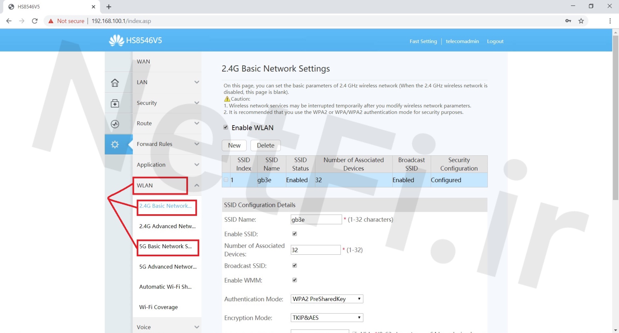 پس از انتخاب Basic از قسمت SSID Name میتوانید نام وای فای که روی گوشی و لپ تاپ و سایر دستگاه های وای فای مشخص میشود را تغییر دهید